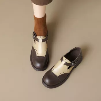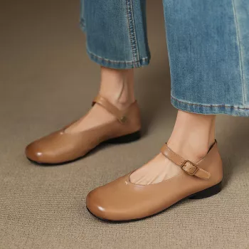Genuine Leather Mary Jane Flats for Women – Round Toe Low Heel Casual Shoes