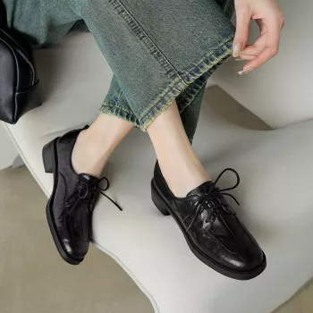 Women’s Genuine Leather Square Toe Lace-Up Loafers