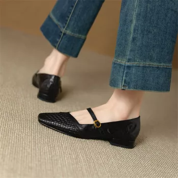 Square Toe Leather Mary Jane Shoes for Women