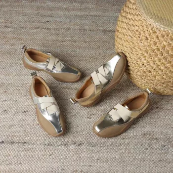 Autumn Women’s Split Leather Round Toe Sneakers with Hook & Loop Closure